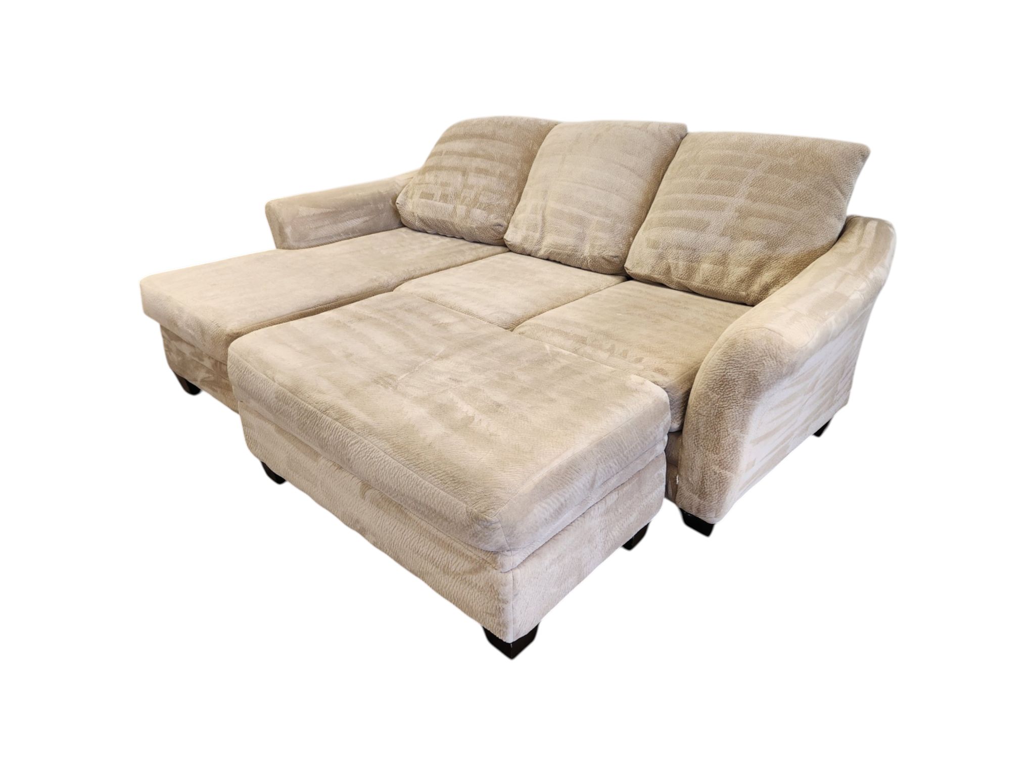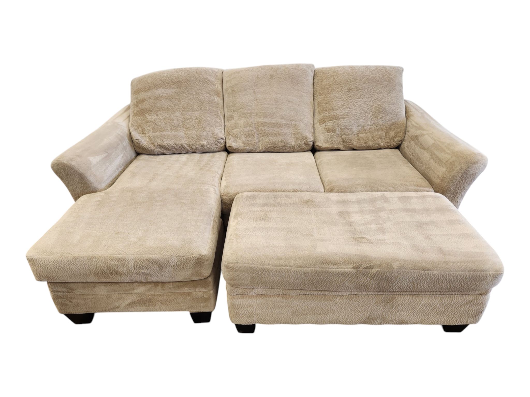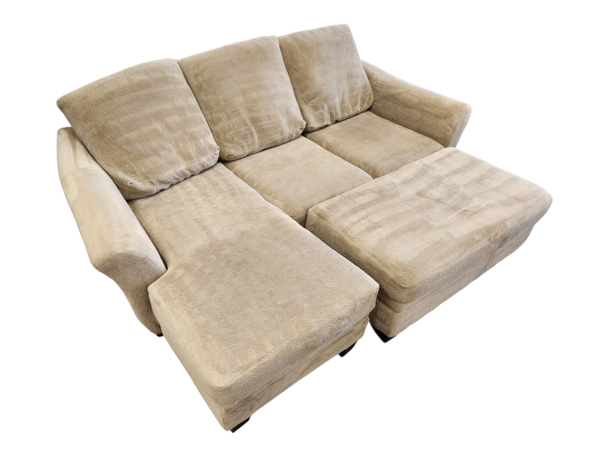 Beige Reversible Chaise Couch with Ottoman