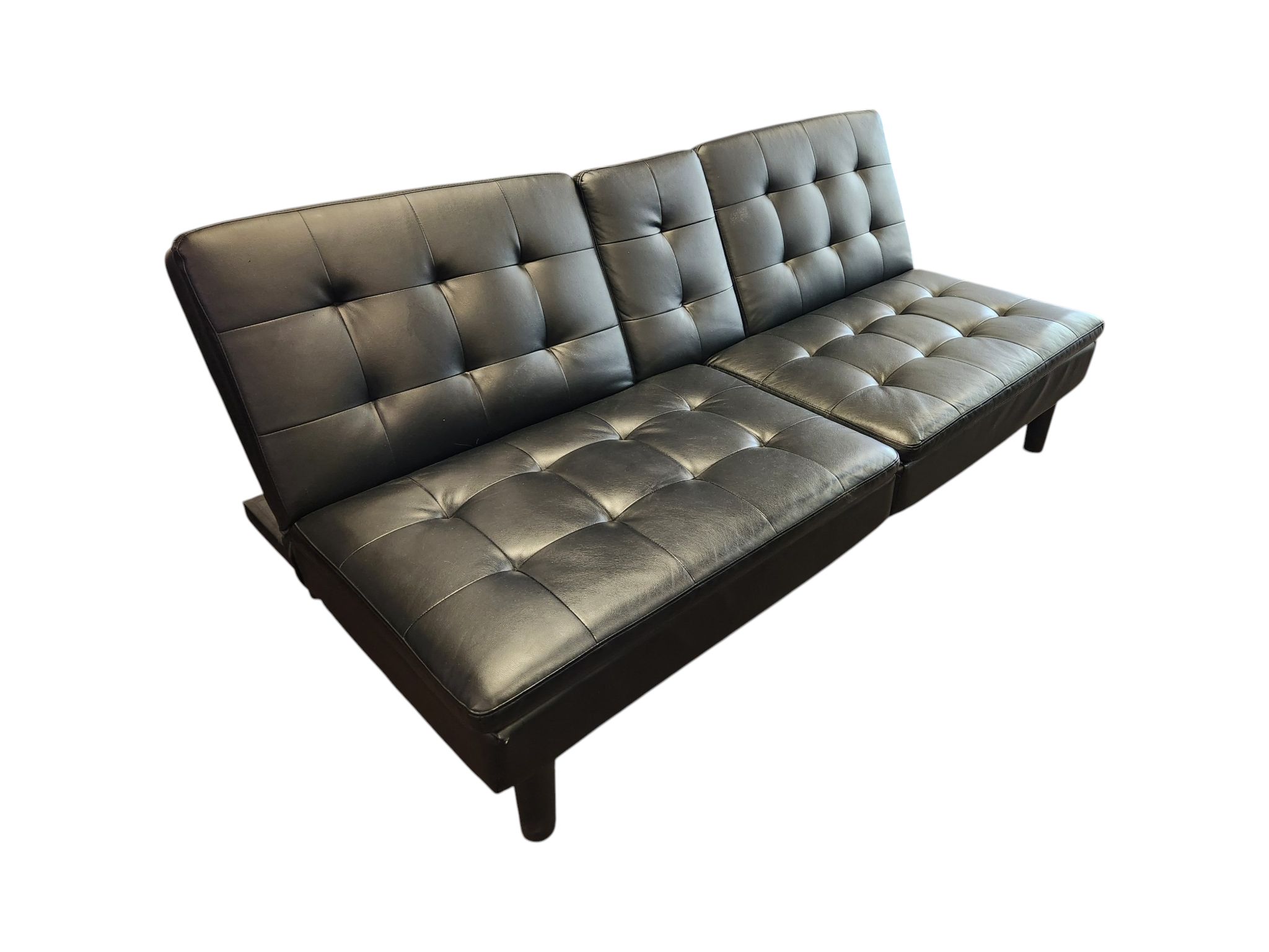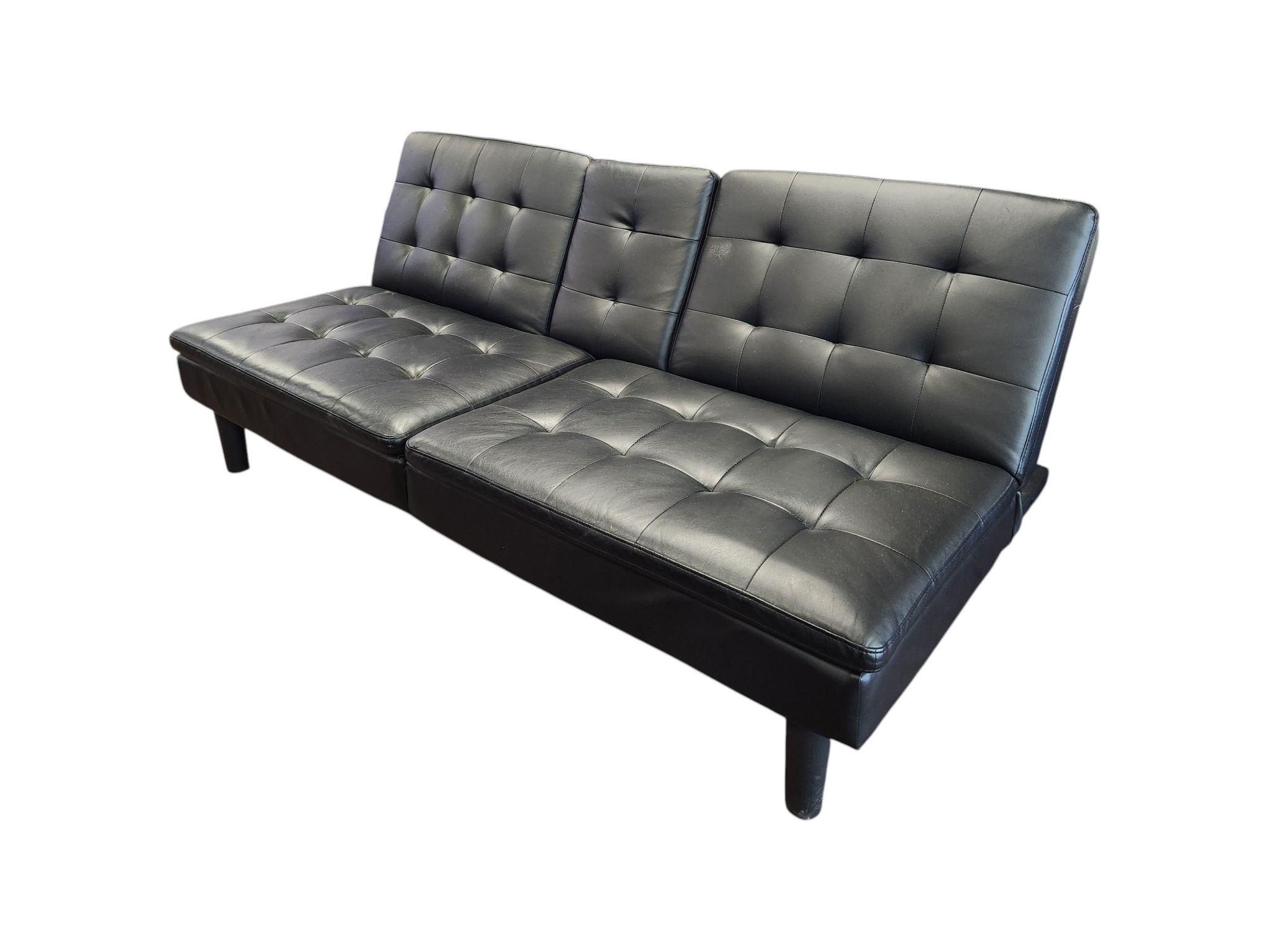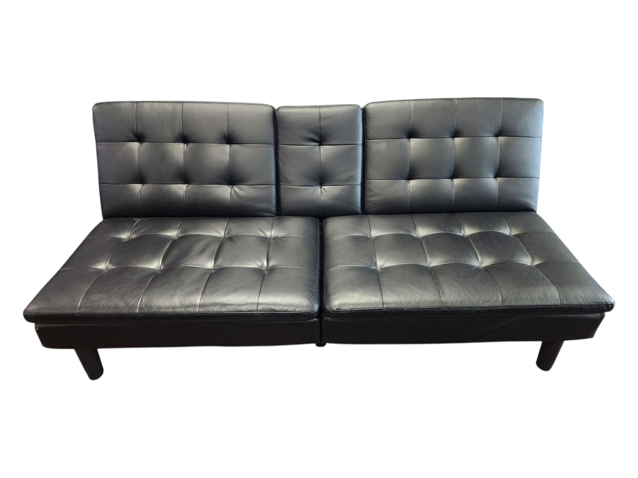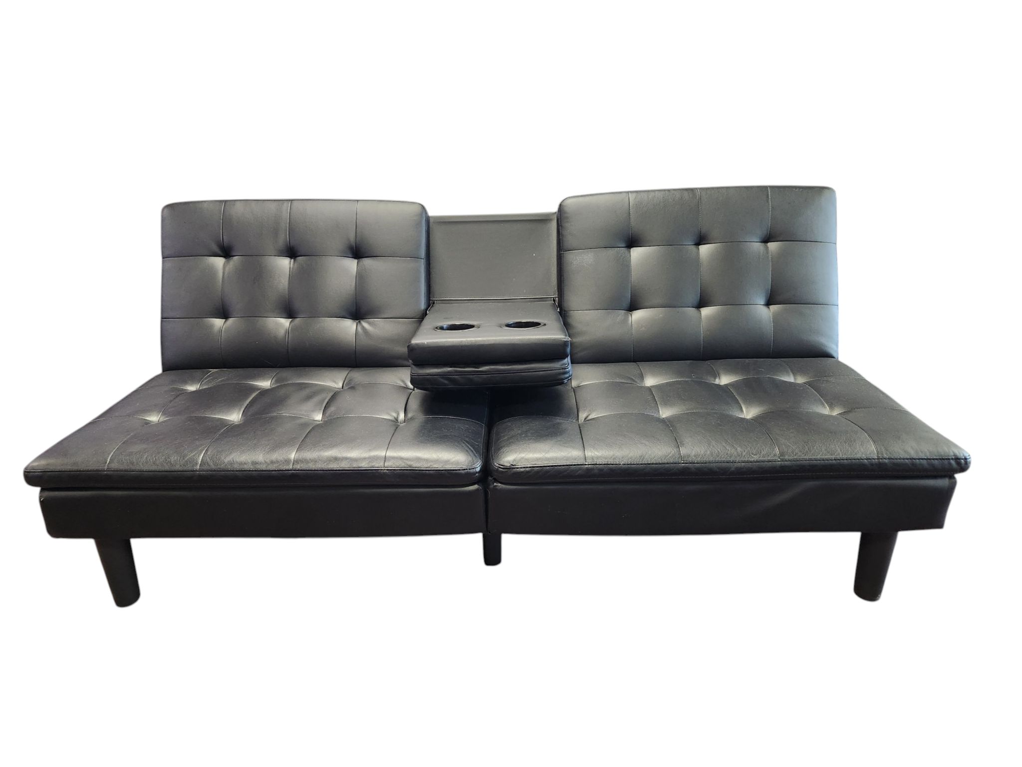Black Faux Leather Futon with Cup Holders