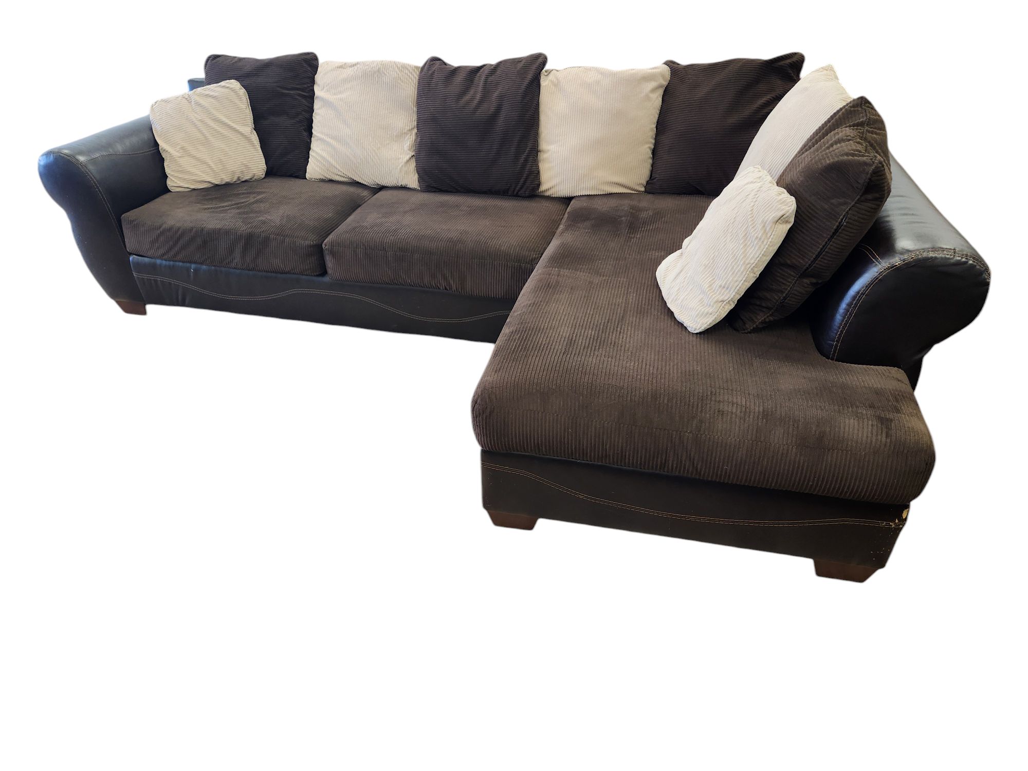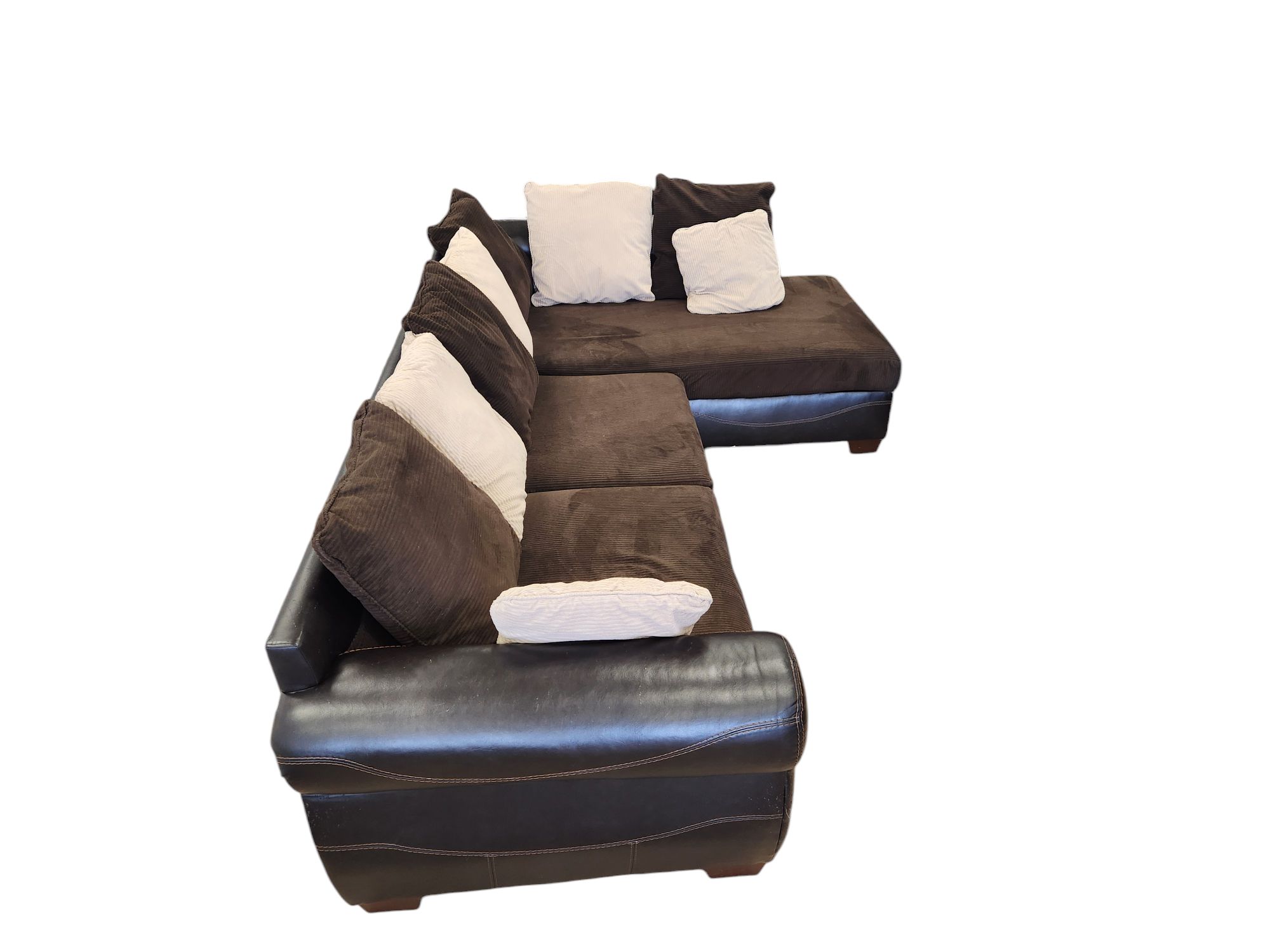 Brown Leather/Cloth Sectional