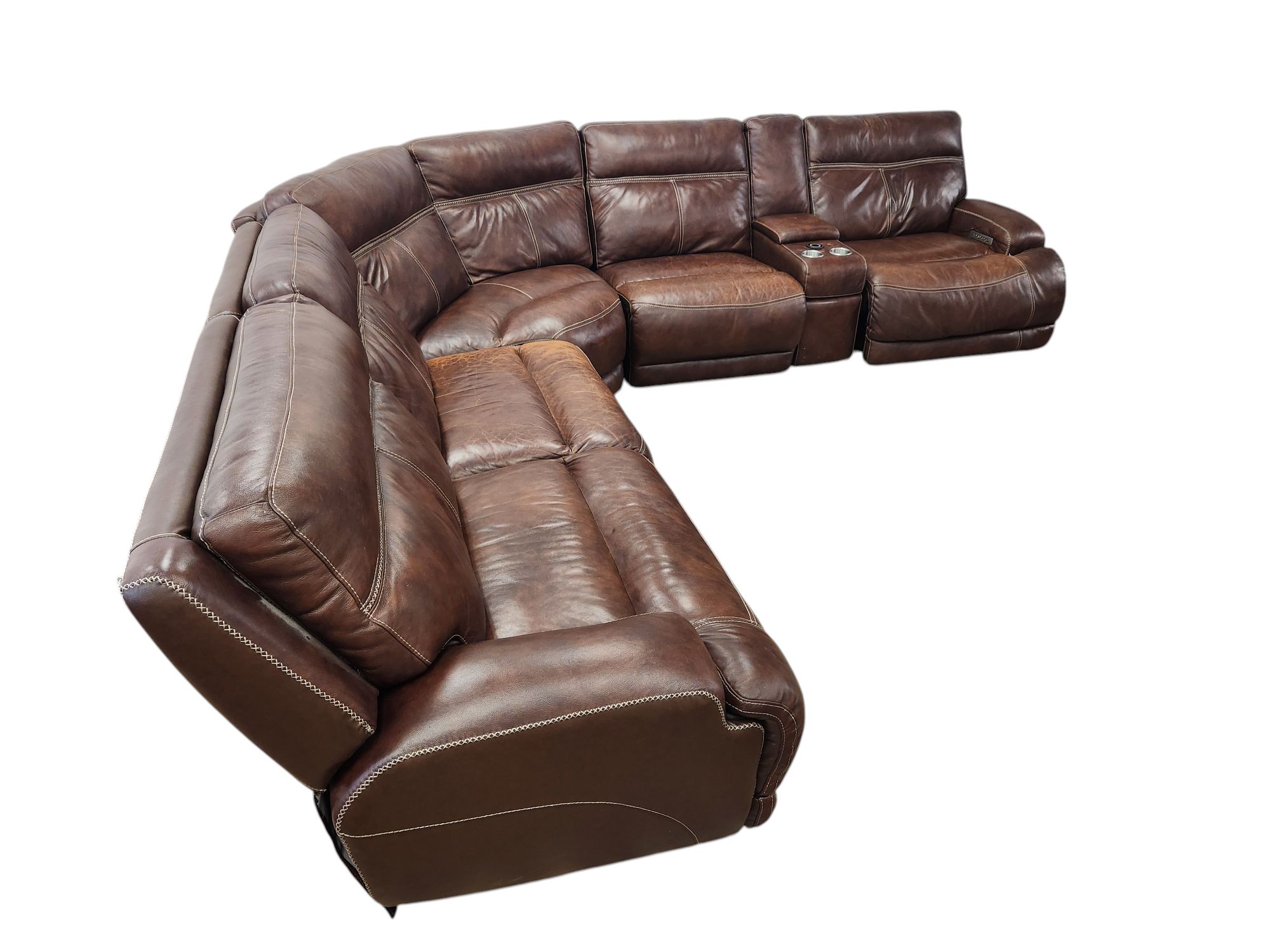 Brown Leather Modular Sectional with Power Recliners