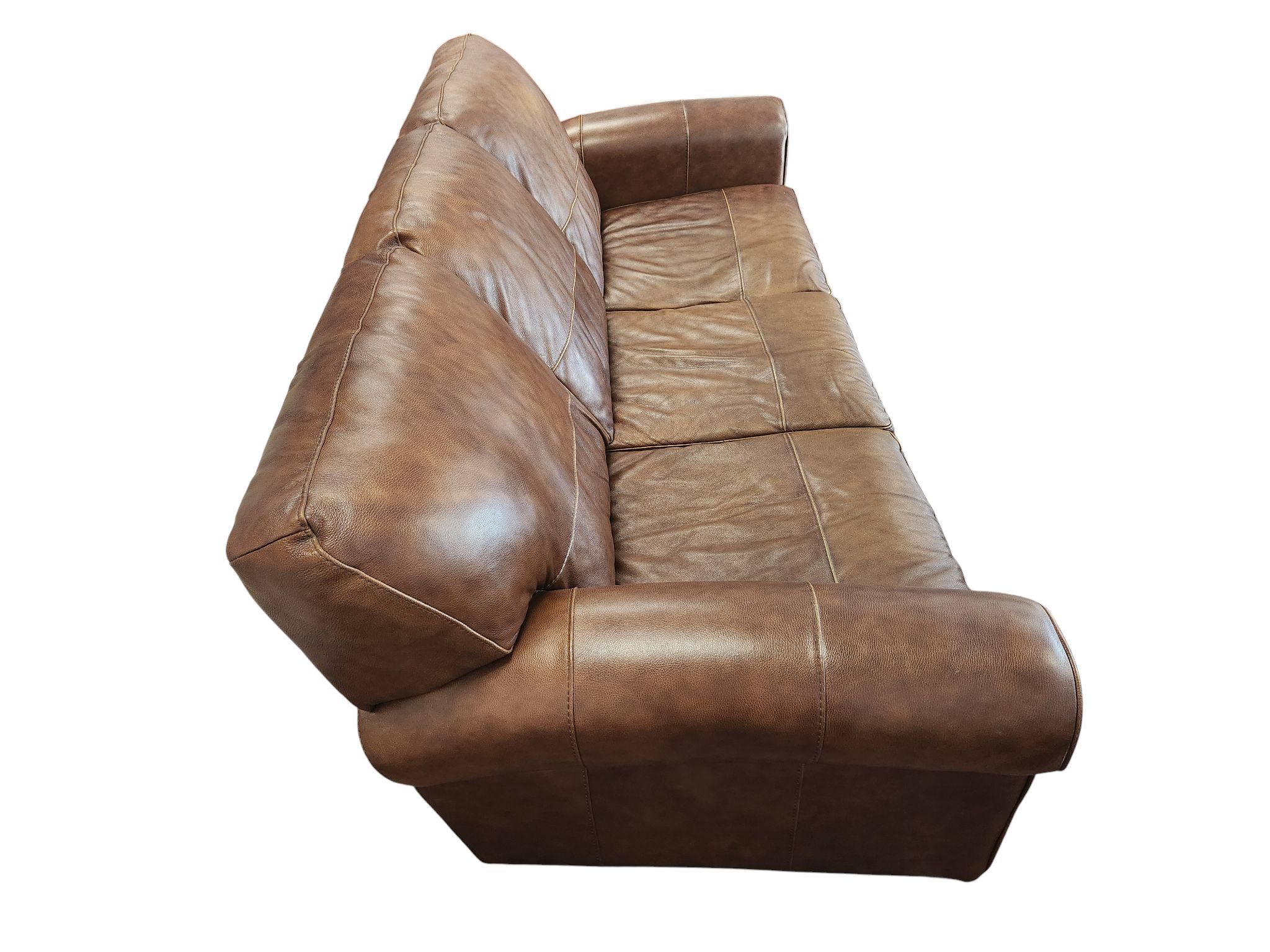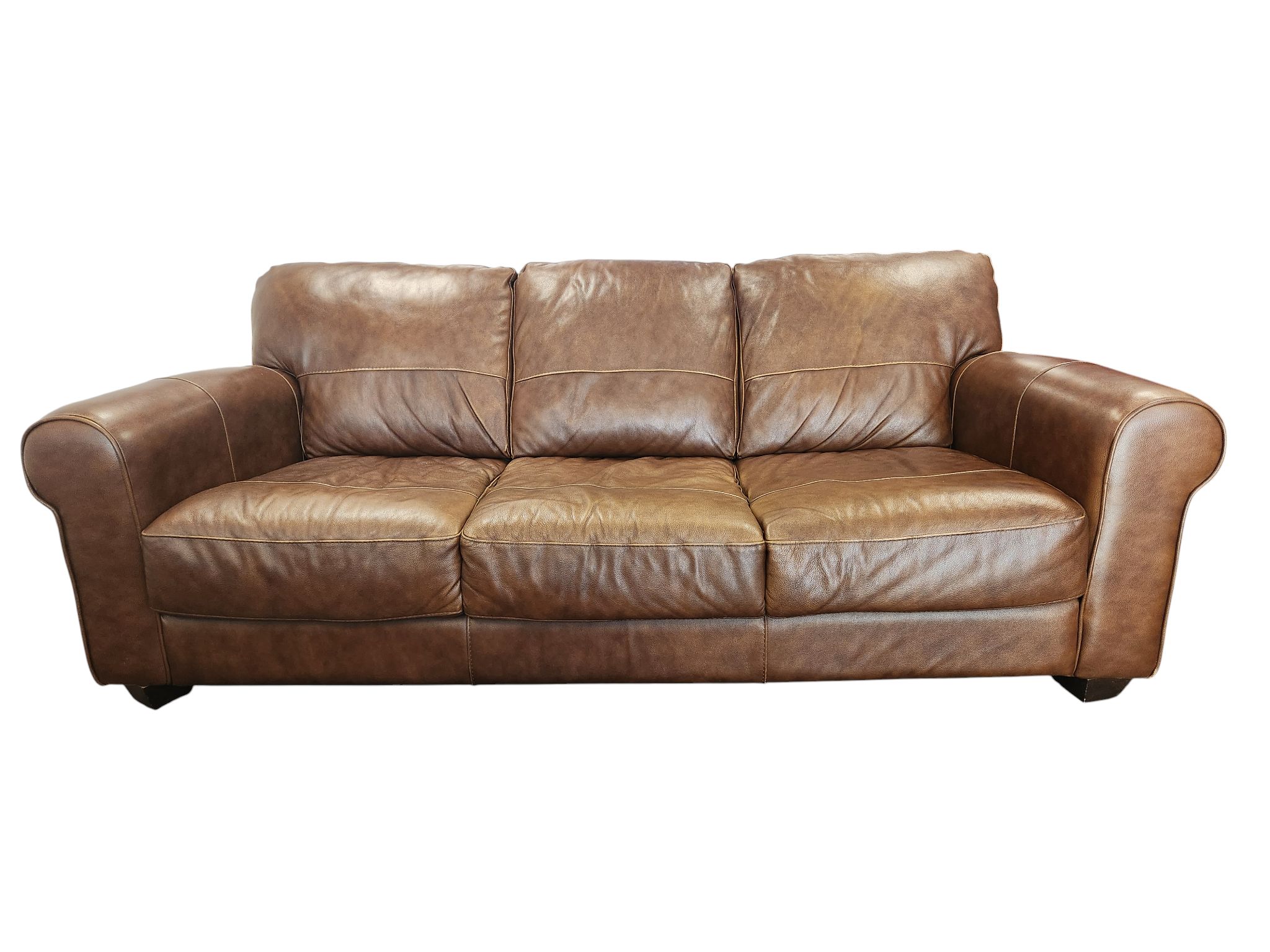 Modern Brown Leather 3-Seat Sofa